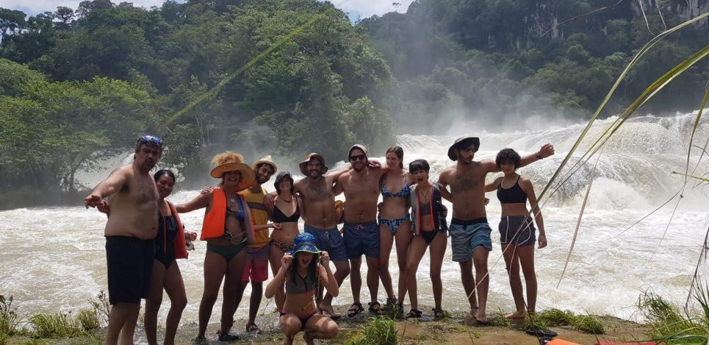 בשלב הזה אחד המקסיקנים קופץ למים עם חבל ושוחה בטירוף נגד הזרם כדי להגיע לגדה השנייה, קושר את החבל ומסמן לנו – יאללה, לקפוץ למים ולחצות את הנהר בעזרת החבל. אחד אחד חוצים, אח"כ עוד כמה מכשולים קטנים בין האיים והופ הגענו לאי קטן שנמצא ממש קרוב למפלים הגדולים. רעש מטורף של מים שוצפים ואנחנו מבלים שם יותר משעה – עושים שטויות, מתחרדנים בשמש ואפילו רוקדים.