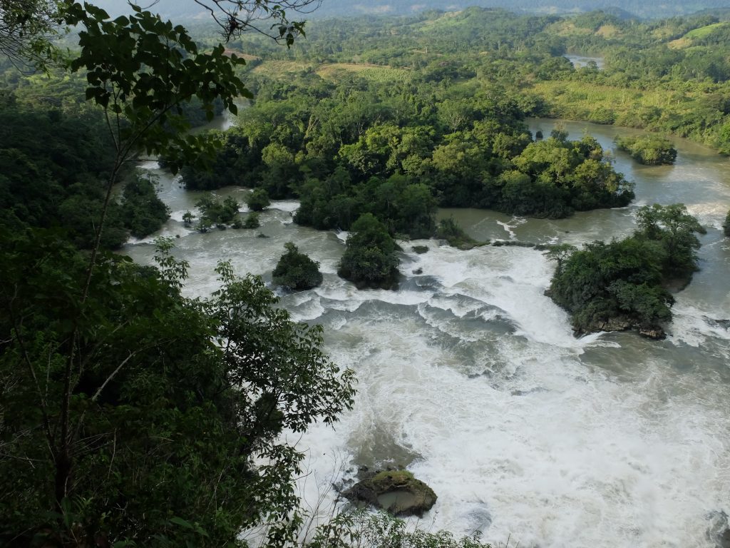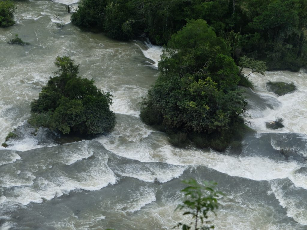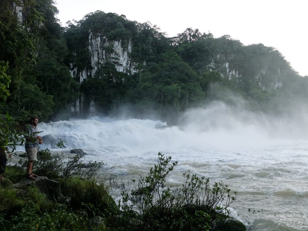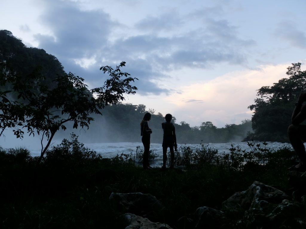 בשלב הזה אחד המקסיקנים קופץ למים עם חבל ושוחה בטירוף נגד הזרם כדי להגיע לגדה השנייה, קושר את החבל ומסמן לנו – יאללה, לקפוץ למים ולחצות את הנהר בעזרת החבל. אחד אחד חוצים, אח"כ עוד כמה מכשולים קטנים בין האיים והופ הגענו לאי קטן שנמצא ממש קרוב למפלים הגדולים. רעש מטורף של מים שוצפים ואנחנו מבלים שם יותר משעה – עושים שטויות, מתחרדנים בשמש ואפילו רוקדים.
