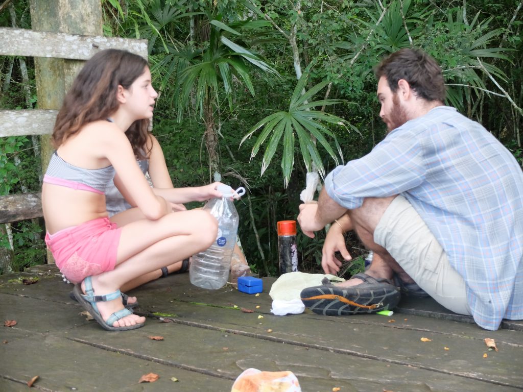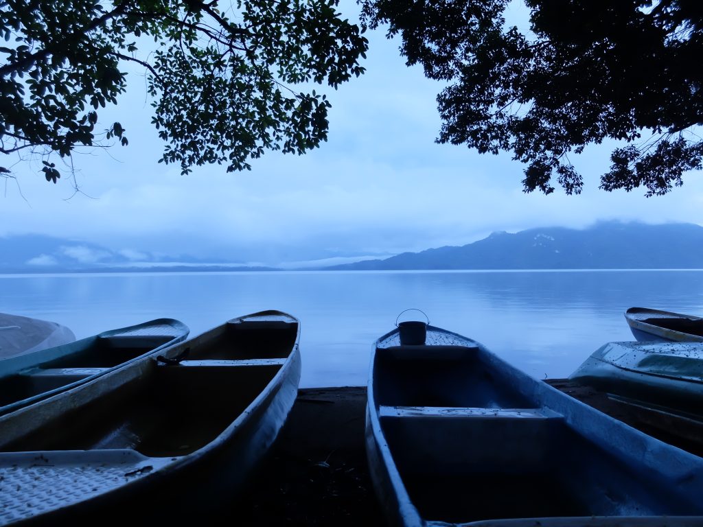 בלילה השני היתושים כבר לא ניסו להיות נחמדים אלינו והתעוררנו כולנו עקוצים ומתגרדים, אבל המראה של האגם באור הראשון הכחלחל של הבוקר, שאגת קופי השאגן, פרפרי ענק צבעוניים והמים הנפלאים גברו על אי הנוחות.