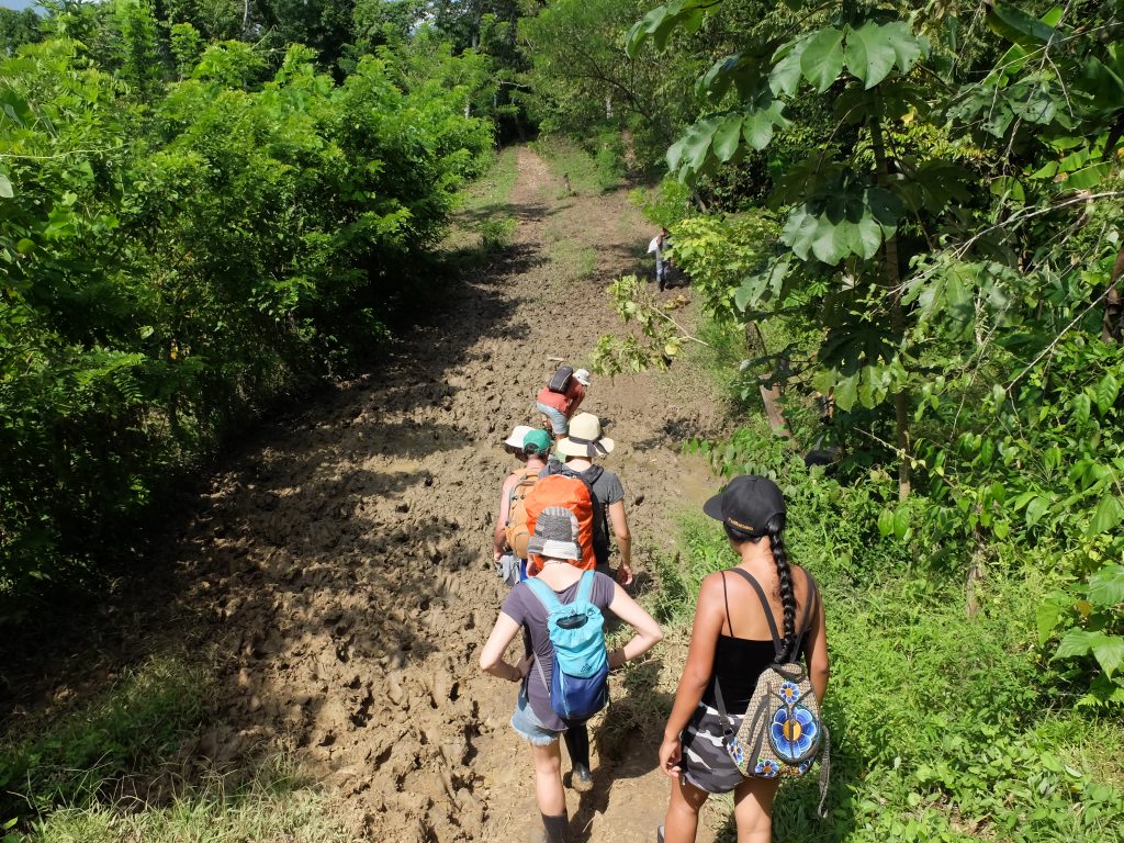 יוצאים בהליכה בין בתי הכפר עד שמתחיל שביל בג'ונגל, הבוץ לאט לאט נהיה יותר עמוק, דניאל שוקעת ולא מצליחה להוציא את המגף, נדב מתקרב בניסיון לא לשקוע בעצמו ומצליח לחלץ את המגף מהבוץ. תמרה מחליקה ונופלת על התחת בבוץ, קמה וממשיכים בהליכה. החום מתגבר, אנחנו מזיעים בטירוף, נוטפות לנו אשכרה טיפות זיעה מהפנים, אבל שישה קילומטרים זה שישה קילומטרים, אין קיצורי דרך. כדי לרומם את הרוח יגיל פוצח בשירה עם השיר הידוע של מאיר אריאל אבל מוסיף טוויסט קטן וכולנו מצטרפים אליו "היי היי, כל העניין הוא לשתות משהו קר במיראמאר"