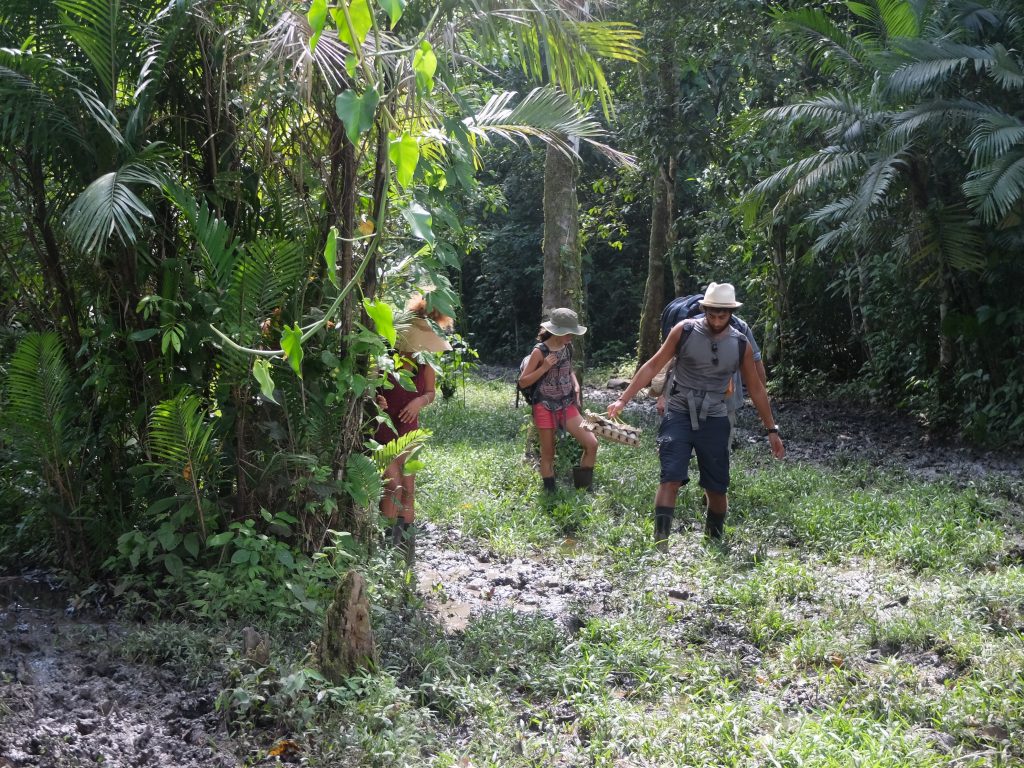 שטנו, צחקנו, חוזרים לסירות שמשיטות אותנו לנקודה בחוף, נוטשים את הסירות ומתחילים ללכת יחפים עם בגדי ים בג'ונגל, שורשים של עצים שיורדים כמו נדנדות טרזן פראיות, צמחייה מטריפה והרבה בוץ.